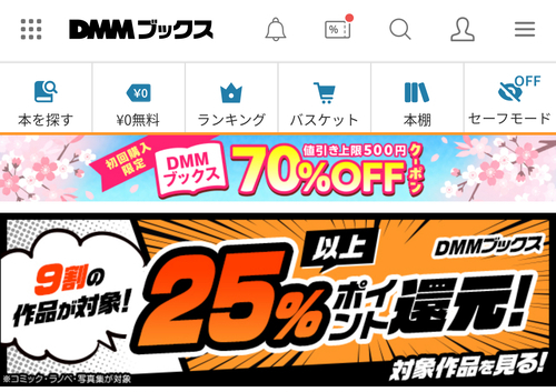 さらに、DMMブックスは年に数回「スーパーセール」や「70%ポイント還元キャンペーン」など、大型の割引イベントを開催します。